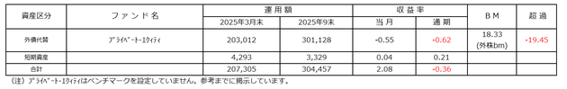 ◆運用機関別・ファンド別 運用委託額、収益率(当月・通期)、BM比較(通期)